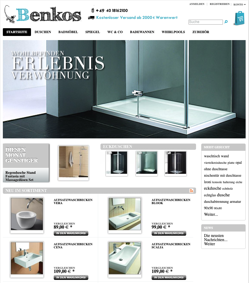 Seit 2001 steht unser Name Benkos für Kompetenz, Schnelligkeit und Top-Konditionen. Lassen Sie sich überzeugen von unseren Erfahrungen in den Fachbereichen für Sanitär mit unseren Waschbecken, Armaturen, WC, Duschen, Badewannen, Wannen, Duscharmaturen, Duschköpfe, Aufsatzwaschbecken, Sauna, Fliesenkleber, Fugen, bad Zubehör und vieles mehr. Hersteller Unser Online Shop ist für Sie 24 Stunden da. Stöbern Sie in Ruhe und bestellen --Sie alles was Sie für Ihr Bad und Ihre Sauna brauchen. Das alles ganz bequem von Ihrem Schreibtisch oder von Ihrem mobilen Gerät aus. Neben humanen Lieferkosten sorgen wir für kurze Transportwege und sichern Anlieferung der wertvollen Fracht. Wir zeigen Transparenz gegenüber unseren Kunden und schaffen so gegenseitiges Vertrauen. Unser Telefonservice steht Ihnen gerne zur Beratung bei und beantwortet Ihre Fragen Rund um Ihre Bestellung. Unser fachlich geschultes Personal findet eine Lösung für Sie.